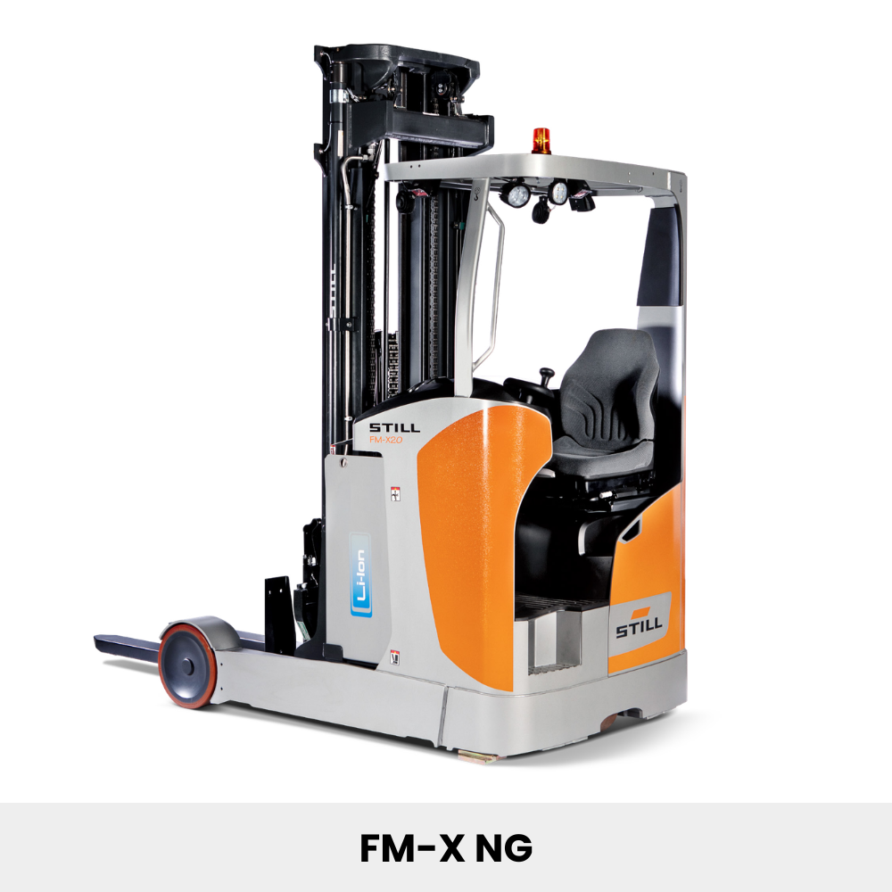 Empilhadeira Elétrica Retrátil FM-X NG é ágil, segura e eficiente. Com excepcional capacidade de carga residual, comandos precisos e ergonômicos, e design que proporciona um excelente campo de visão, a FM-X NG faz com que a armazenagem de cargas em altas elevações e corredores estreitos seja levada a um nível superior de produtividade. Produzida no Brasil, a FM-X NG está preparada para atender às mais diversas situações apresentadas pela indústria. Sua robustez e confiabilidade garantem uma alta disponibilidade da empilhadeira, o que representa um baixo custo de manutenção e maior tempo de operação sem paradas não programadas. FM-X NG é a empilhadeira mais vendida